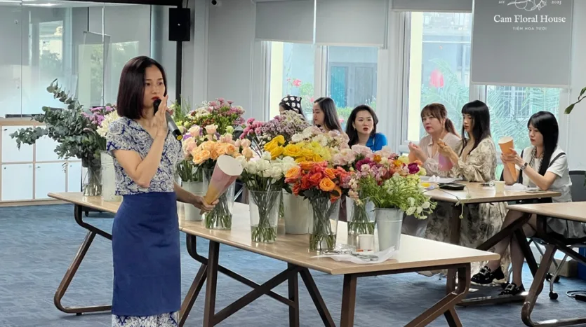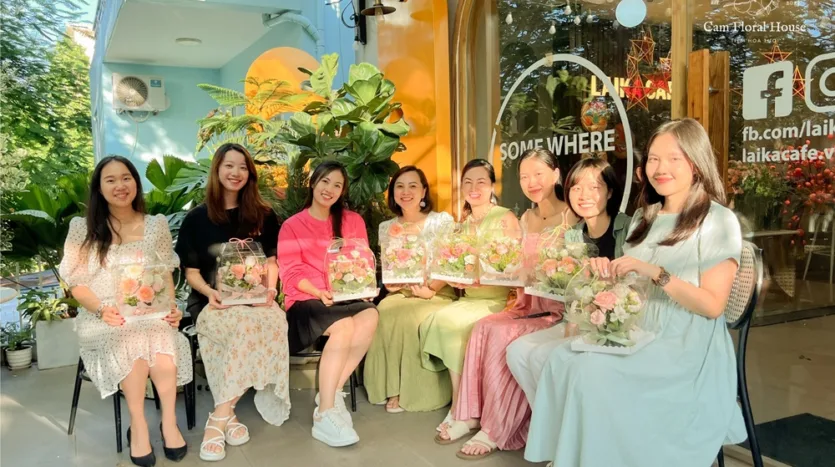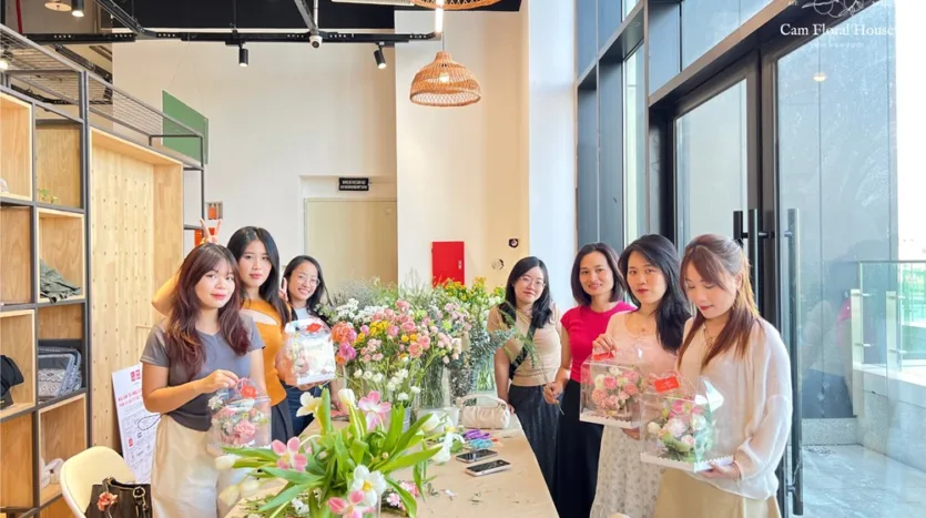目前,Cam Floral House 正在河内举办插花工作坊。 这家花店位于黄梅区的文兴街。然而,不要担心距离,因为工作坊通常在河内市中心的迷人咖啡馆举行。这确保了参与者的最大便利性。工作坊的价格合理,大约在300,000越南盾到1,000,000越南盾之间。参与者将获得新鲜花朵、插花工具以及花艺师的专业指导。你将有机会带着精心制作的花艺品回家。工作坊旨在让人愉快和轻松,营造出一个舒适的氛围,使所有参与者都感到舒适。Cam Floral House致力于让每个工作坊成为每个参与者难忘的体验。