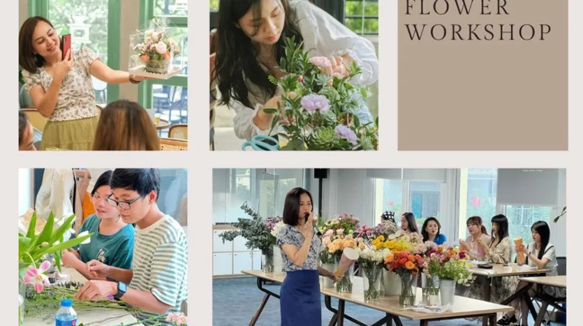 河内哪里可以参加花卉工作坊和课程?