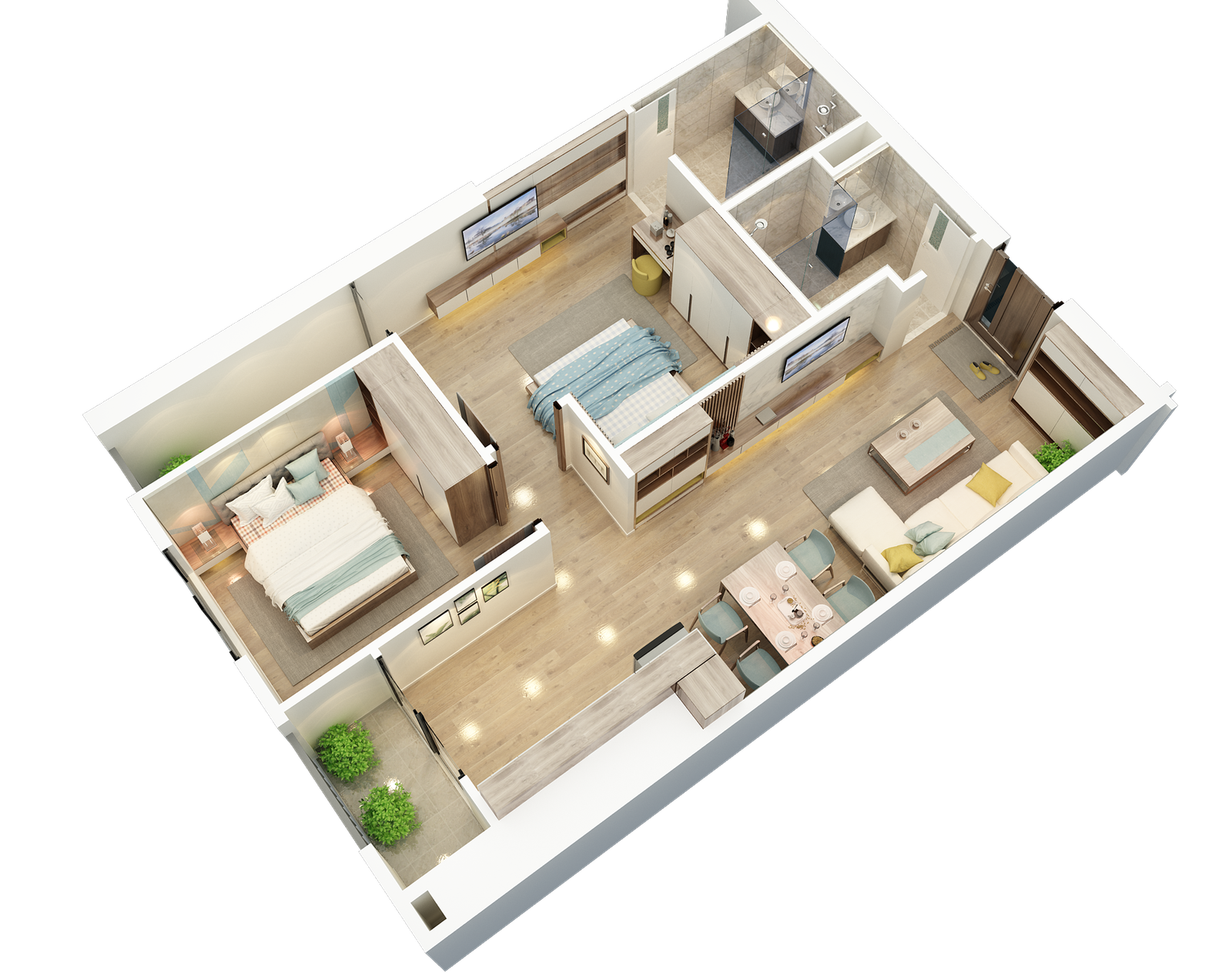 - Apartment type: 2 bedrooms and 3 bedrooms