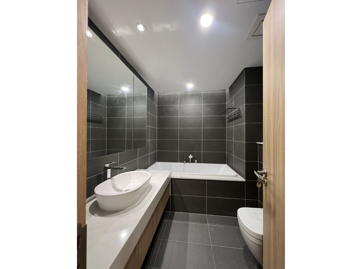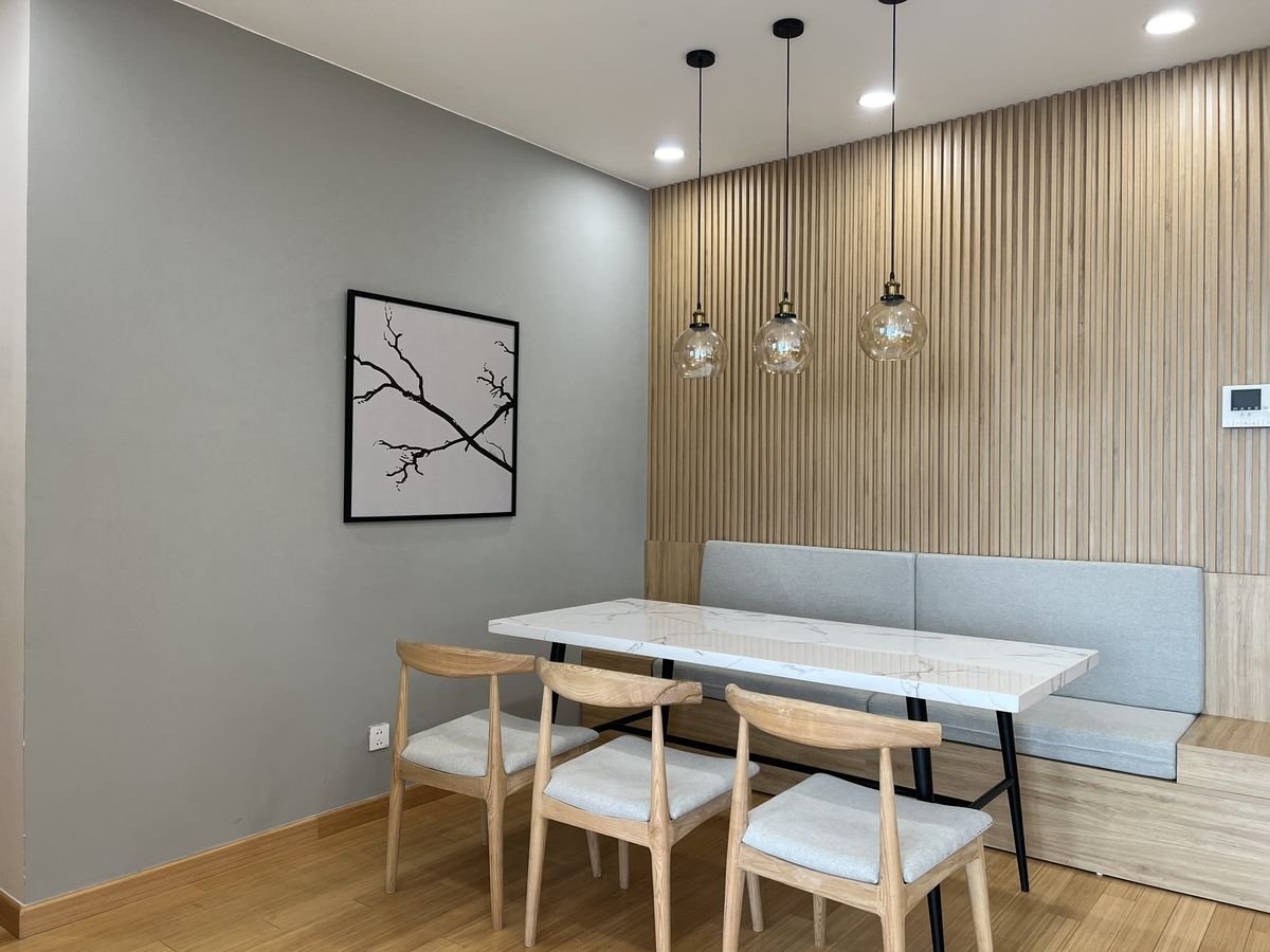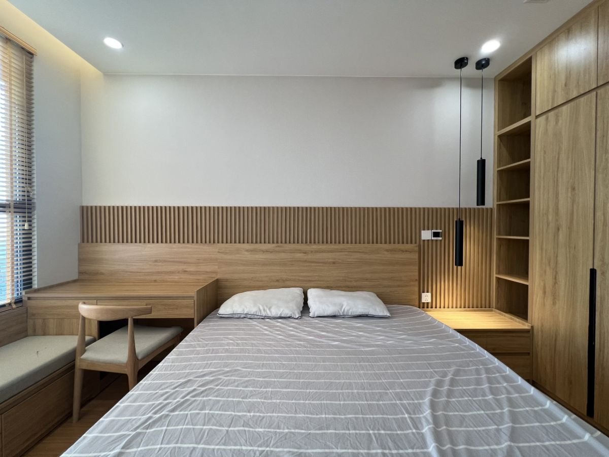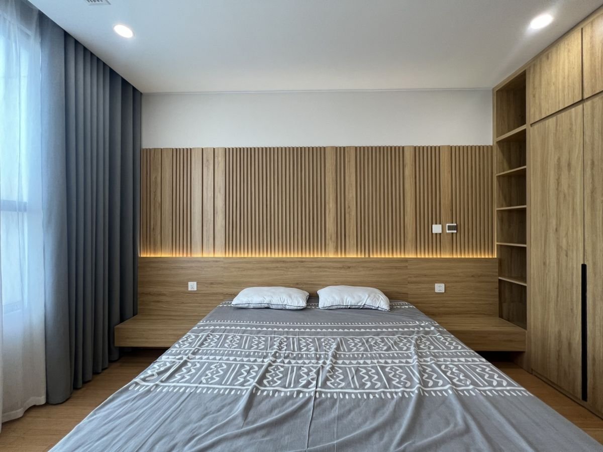 The interior is designed with light wood finishes and clean lines, creating a warm, minimalist atmosphere that feels both modern and inviting. As a high-end development, The Zei Residence offers excellent on-site amenities, including a swimming pool, gym, retail shops, and a rooftop sky garden. The building is also within walking distance of a metro station, providing easy access to the city center.