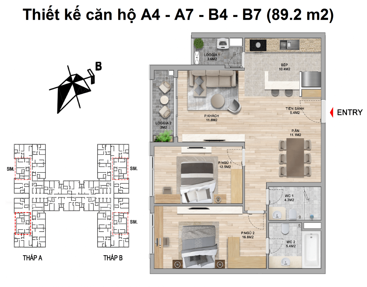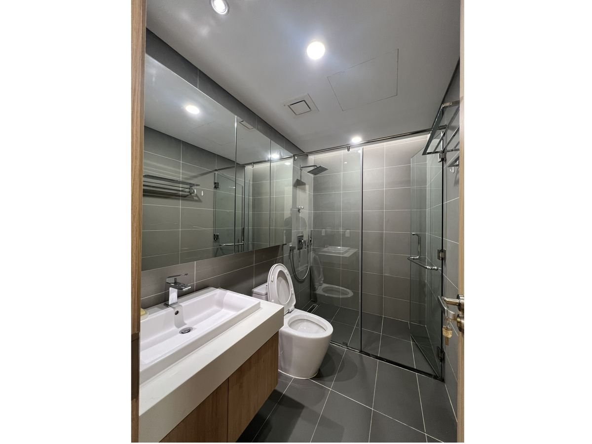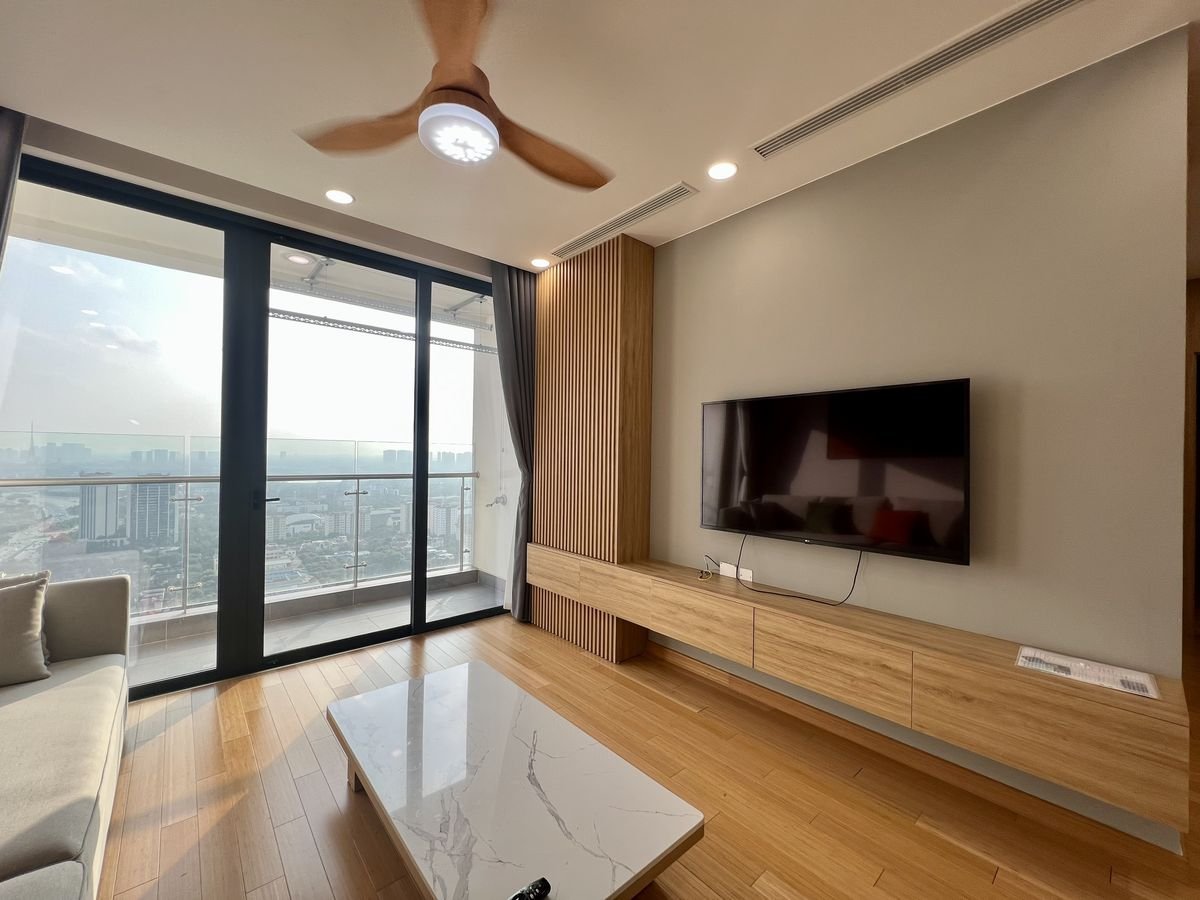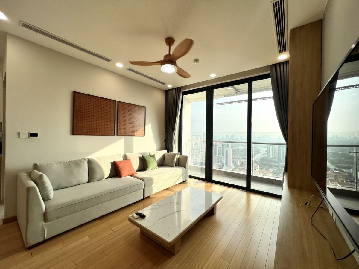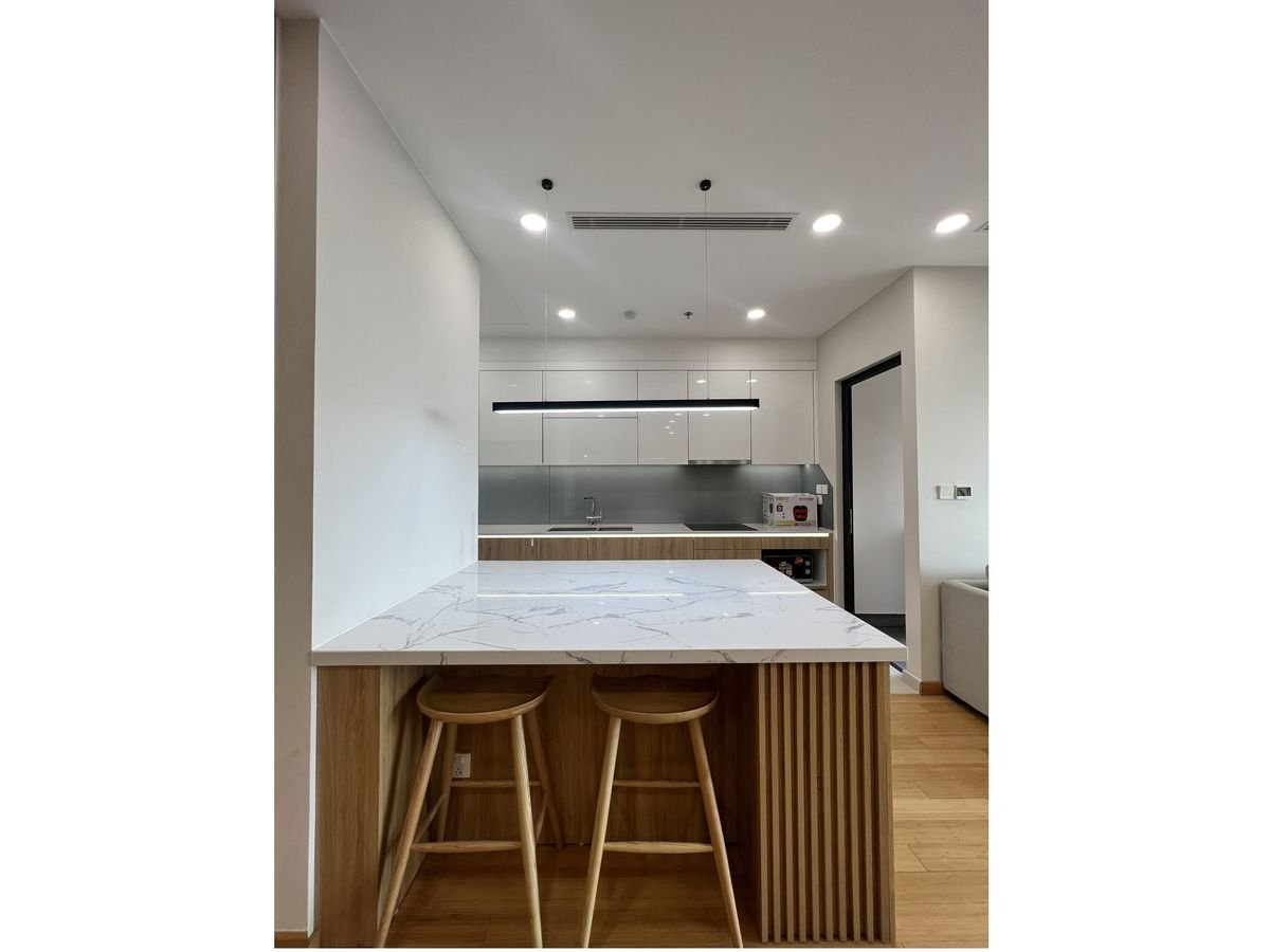 A great option for tenants seeking a comfortable 2-bedroom apartment in the My Dinh area, this cozy unit is located in the premium The Zei Residence. With a total living space of nearly 90m², the apartment features 2 bedrooms and 2 bathrooms, ideal for small families or professionals. The living room opens onto a main balcony on a high floor, offering a pleasant city view, while a separate laundry balcony is conveniently connected to the kitchen.