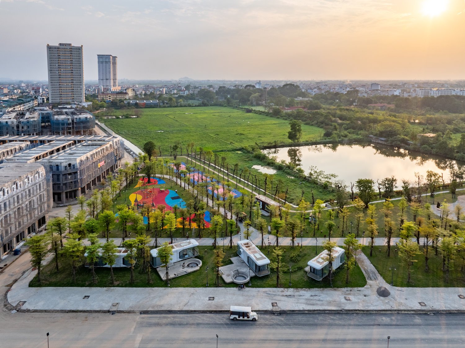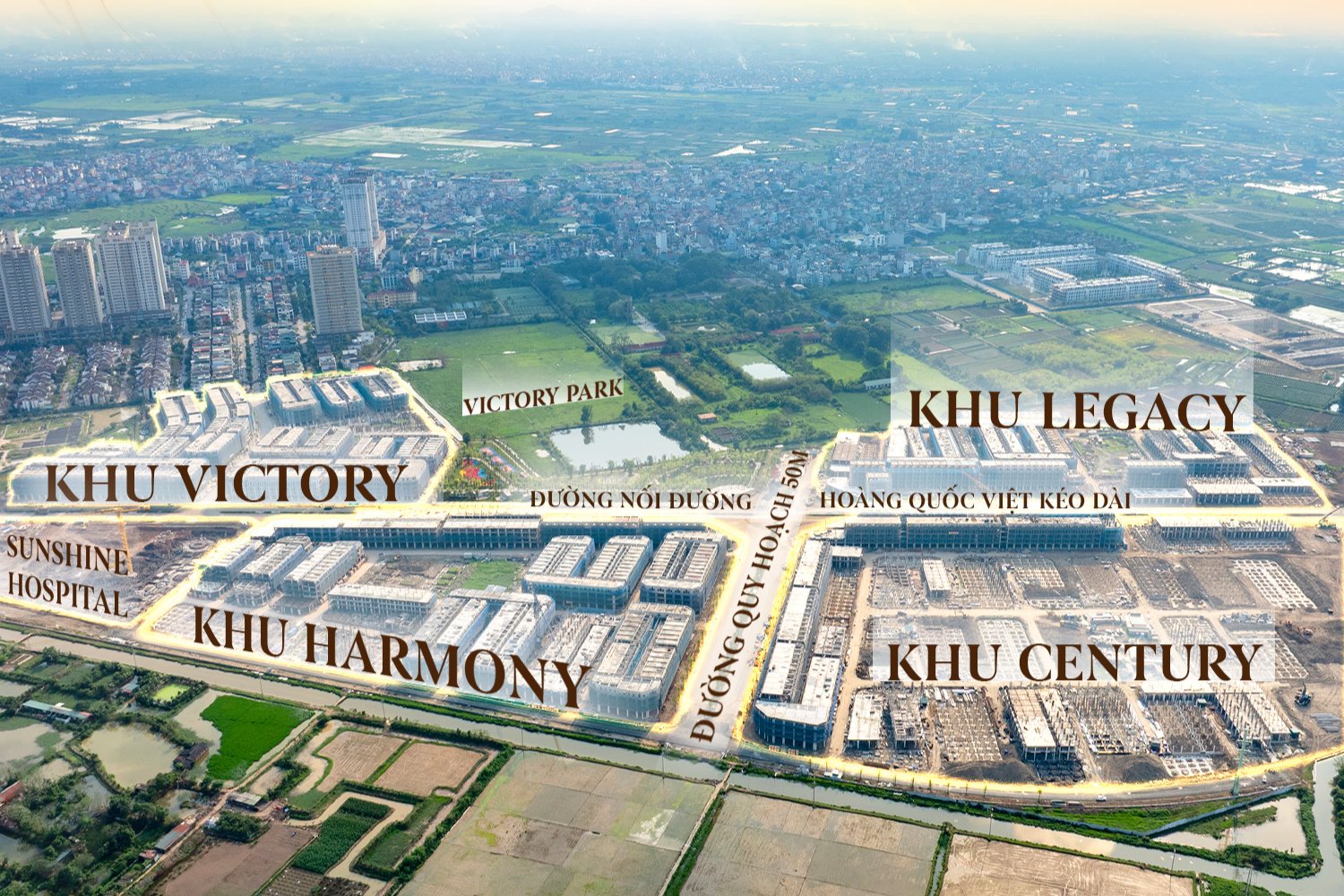 Location: Situated on the frontage of the connecting road to the extended Hoang Quoc Viet Boulevard, Dan Phuong District, western Hanoi