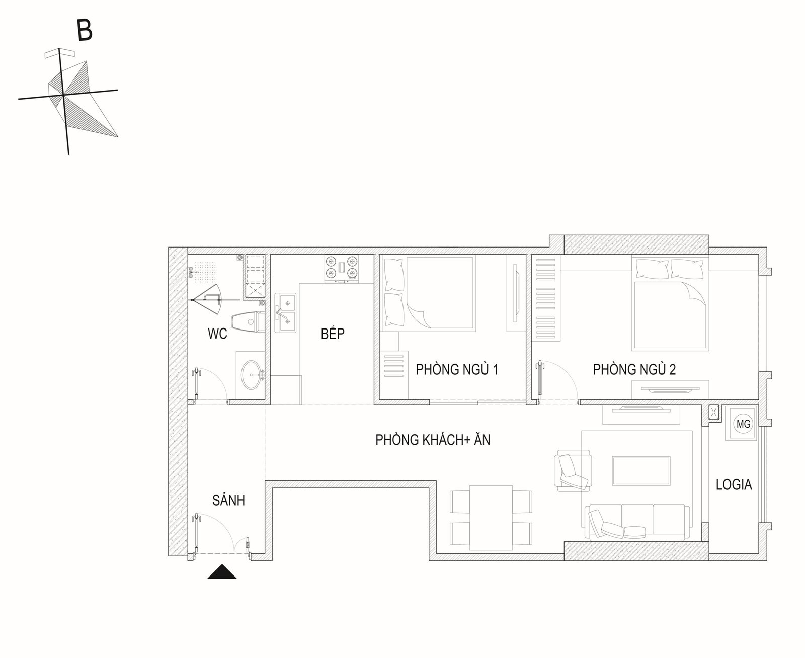 This 64 sqm apartment is thoughtfully laid out with a bright living room, one master bedroom, one smaller bedroom, a separate kitchen, and a bathroom. Both the living room and bedroom enjoy open views toward the Red River and West Lake, with refreshing Southeast breezes flowing throughout the home.