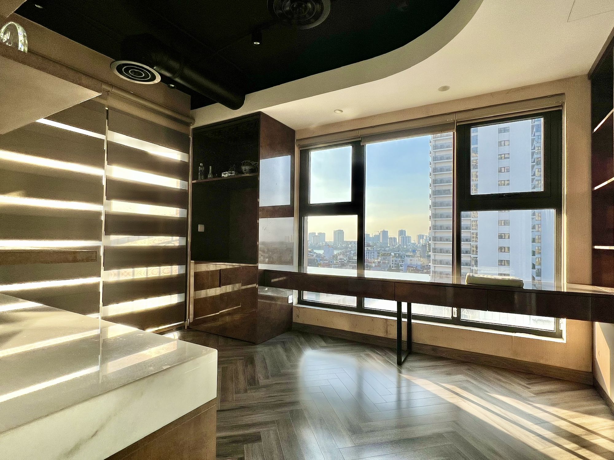 This is a bargain for tenants looking for a spacious 2 bedroom apartment near Westlake. We are delighted to offer this vibrant apartment in a modern high-rise building on Xuan Dieu street. Total area is 145m2 with 2 bedrooms and 2 bathrooms. Open plan living room with desirable kitchen (with built-in oven, microwave & dishwasher). The master bedroom comes with a changing room. Corner units with 2 open sides facing Westlake. The interior design brings energy to its occupants. On-site facilities: mall, cinema, kindergarten, gym, swimming pool. Surroundings are the best for expats. Please contact us to rent this well-priced apartment in D’. Le Roi Soleil.